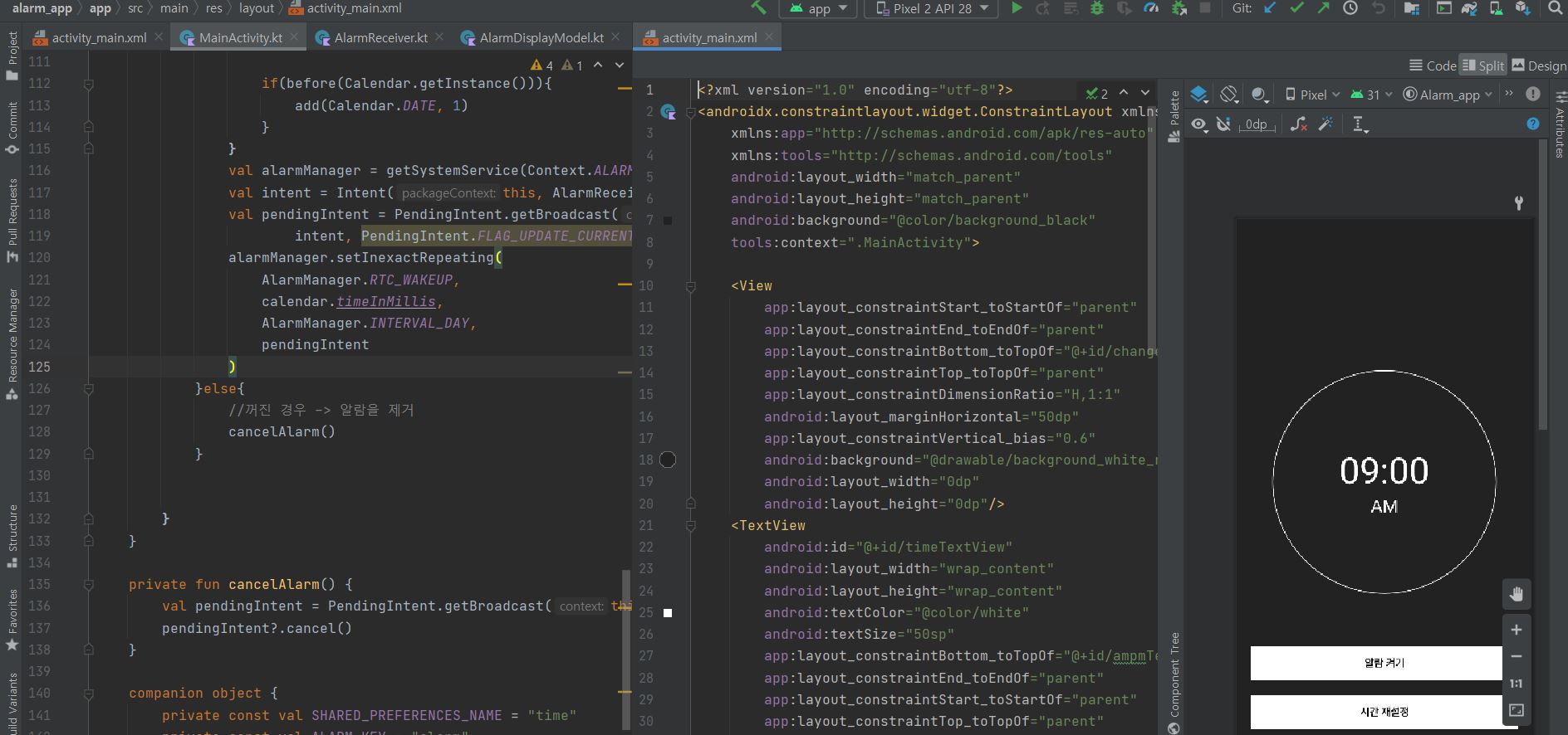 전달받은 알람이 휴대폰에 보여지기 위해서 notification channel을 생성하고 notify 해주는 기능을 담은 AlarmReceiver 클래스를 작성하였습니다.