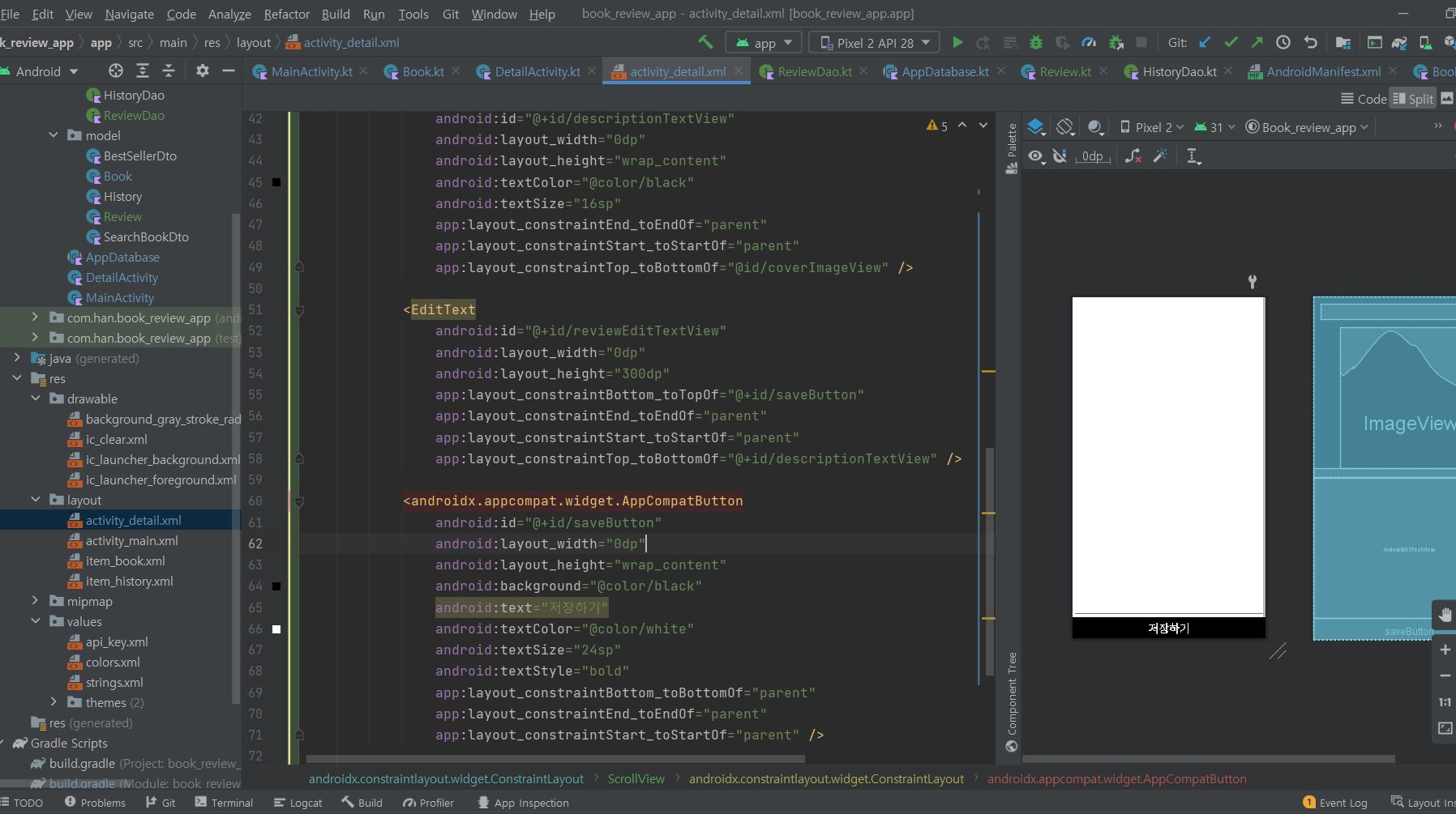 android:text="저장하기"