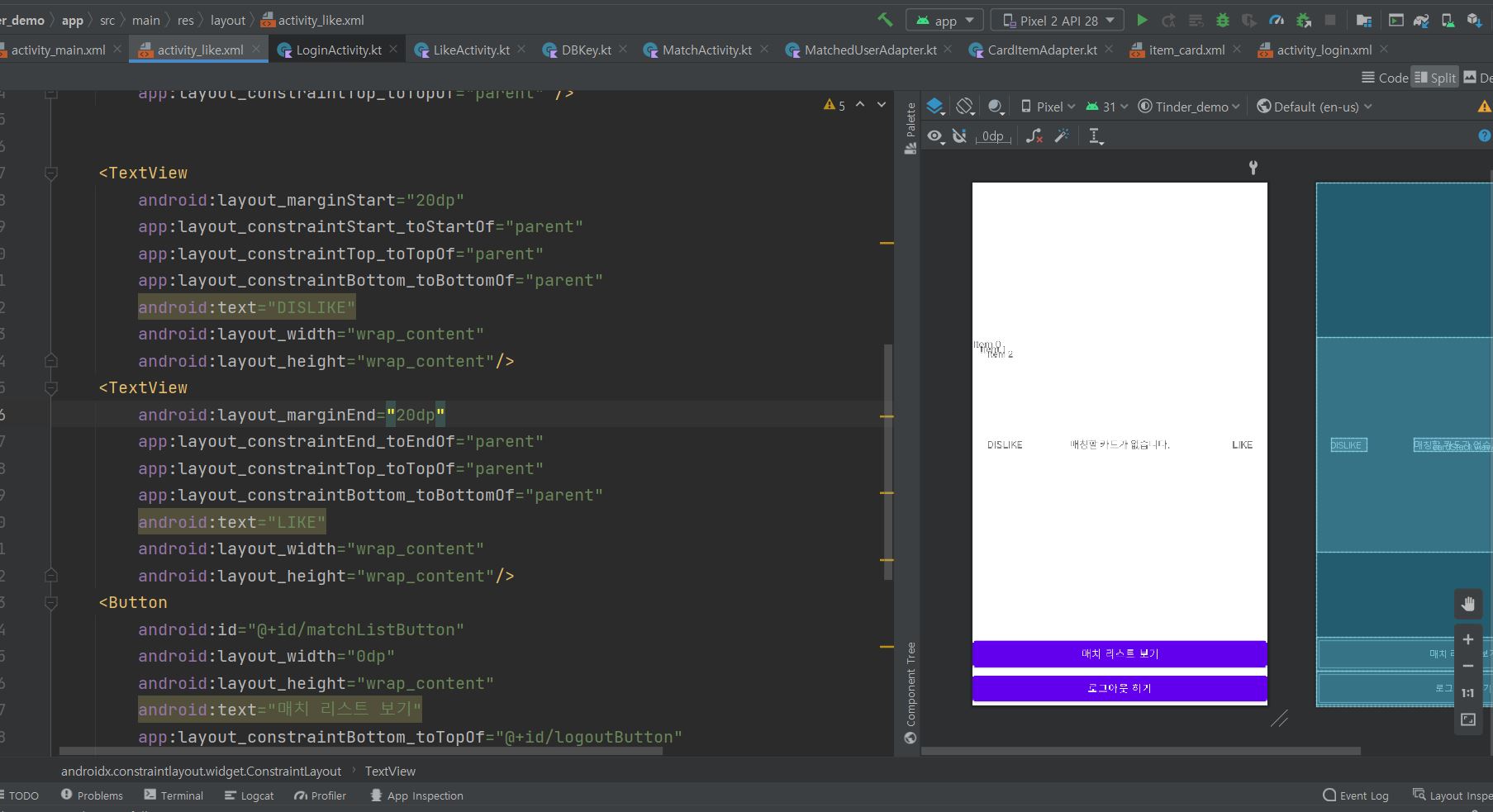 틴더앱에서 사용되는 기능들을 비슷하게 만들어보는 과정이었습니다.